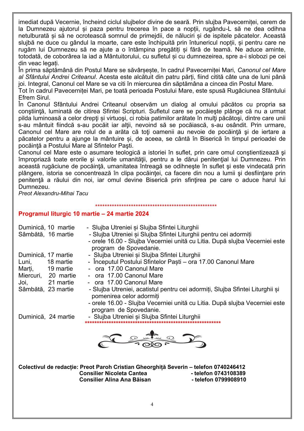 PROGRAM LITURGIC SĂPTĂMÂNA A VI - A DIN POSTUl MARE 30.03-05.04.2026